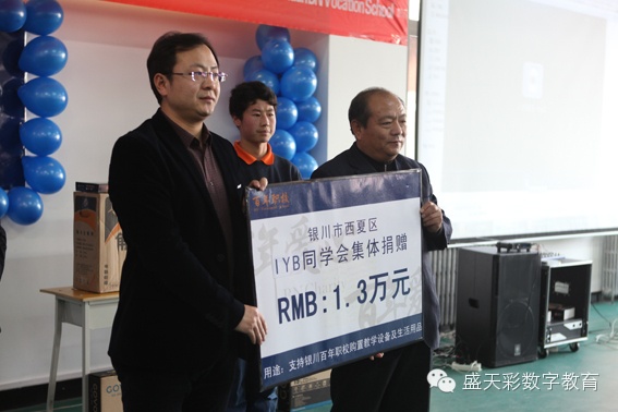 2012年12月24日,我校任立超校長組織IYB同學(xué)會集體為銀川百年職校捐贈價值1.3萬元的物品。捐贈中,任立超校長說:“這是我人生中第一次組織策劃的公益活動,雖然捐贈的資金并不是很多,但也是我們IYB同學(xué)會每位同學(xué)的一點(diǎn)心意。今年我將竭盡全力調(diào)動身邊資源策劃一場更大的捐贈活動,希望能夠讓更多需要幫助的學(xué)子完成學(xué)業(yè)。同時,盛天彩從今年開始將開放一些動漫高級課程,免費(fèi)為那些貧困家庭的孩子提供一個了解動漫制作、學(xué)習(xí)動漫制作的機(jī)會?!弊詈螅瘟⒊iL對參與此次捐贈活動的IYB同學(xué)會的每一位同學(xué)表示再次的感謝。