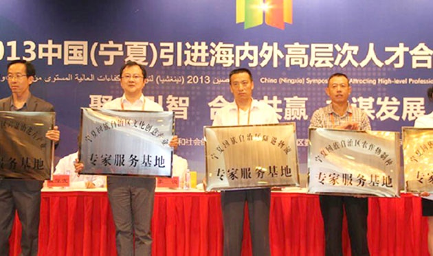 9月13日,根據(jù)2013中國·阿拉伯國家博覽會總體安排,由人力資源社會保障部支持,自治區(qū)黨委、政府主辦,以“聚才引智、合作共贏、共謀發(fā)展”為主題的2013中國(寧夏)引進海內(nèi)外高層次人才合作洽談會在銀川舉行。人力資源社會保障部黨組副書記、副部長楊志明,自治區(qū)領(lǐng)導傅興國、李銳、何學清、張學武出席會議。14名中國科學院、中國工程院及國外院士參加了會議。會議由自治區(qū)政府副秘書長李建功主持。